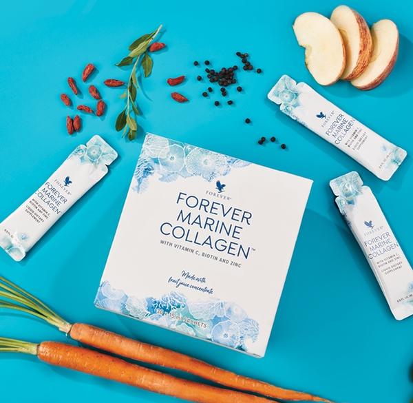 Η οµορφιά ξεκινά εκ των έσω µε το Forever Marine Collagen™, ένα καινοτόµο µίγµα θαλάσσιου κολλαγόνου υψηλής ποιότητας µε φυτικά συστατικά και ουσιώδεις βιταµίνες, συµπεριλαµβανοµένου βιταµίνης Α και βιοτίνης καθώς και ψευδαργύρου που συµβάλλει στη διατήρηση της φυσιολογικής κατάστασης του δέρµατος, των µαλλιών και των νυχιών. Το προϊόν Forever Marine Collagen™ περιέχει επίσης βιταµίνη C που συμβάλλει στο φυσιολογικό σχηµατισµό του κολλαγόνου για τη φυσιολογική λειτουργία του δέρµατος, των οστών και των αιµοφόρων αγγείων.