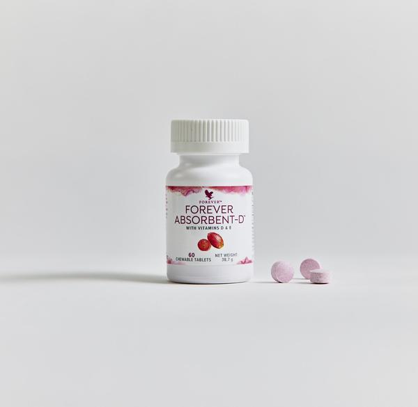 Βελτιώστε την φροντίδα του οργανισμού σας με την Forever Absorbent-D™ σε μασώμενες ταμπλέτες — ιδανικό μείγμα βασικών θρεπτικών συστατικών για τον οργανισμό σας.
